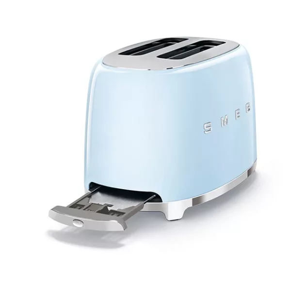 - توستر 2 اسلایس کوچک اسمگ رنگ آبی پاستیلی مدل TSF01 برای انواع نان، از نانهای برشخورده معمولی گرفته تا نانهای ضخیم و حتی باگتهای کوچک، قابل استفاده است.