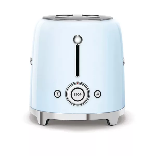 طراحی توستر 2 اسلایس کوچک اسمگ رنگ آبی پاستیلی مدل TSF01 کاملاً الهامگرفته از دهه 1950 میلادی است. این طراحی در کنار رنگهای متنوع و جذاب، حس نوستالژی و کلاسیک را به آشپزخانه شما میآورد. این دستگاه به عنوان یک عنصر دکوری میتواند به راحتی با سایر تجهیزات آشپزخانه هماهنگ شود و جذابیت خاصی به فضای شما بدهد.