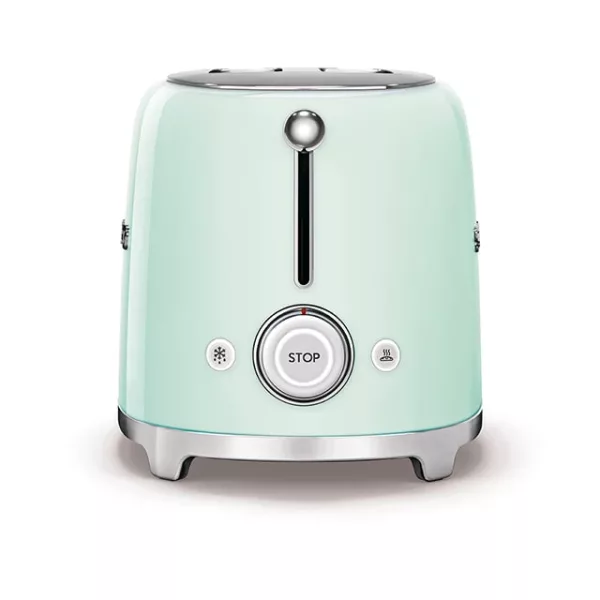 طراحی توستر 2 اسلایس کوچک اسمگ رنگ سبز پاستیلی مدل TSF01 کاملاً الهام‌گرفته از دهه 1950 میلادی است. این طراحی در کنار رنگ‌های متنوع و جذاب، حس نوستالژی و کلاسیک را به آشپزخانه شما می‌آورد. این دستگاه به عنوان یک عنصر دکوری می‌تواند به راحتی با سایر تجهیزات آشپزخانه هماهنگ شود و جذابیت خاصی به فضای شما بدهد.
