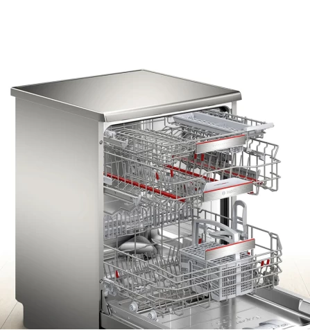 ماشین ظرفشویی بوش مدل SMS8ZDI86Q مجهز به سه سبد شستشو که دارای قابلیت تنظیم ارتفاع هستند و یک سبد مجزای قاشق و چنگال می باشد. از آن جایی که سبدها به راحتی جا به جا می شوند می توانید فضای بیشتری را برای شستشوی قابلمه، ماهی تابه و ظروفی که حجم زیادی می برند ایجاد کنید.
